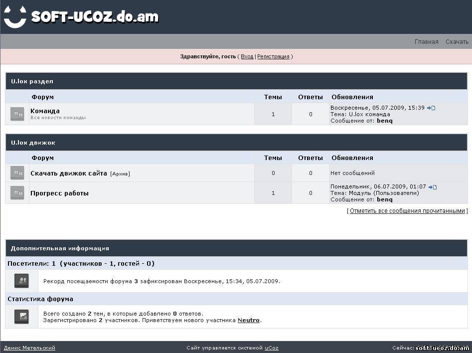 Вступления Добро пожаловать на сайт, господа! На нашем сайте вы можете найти и скачать нужную информацию, а именно скрипты, шаблоны, кнопки и иконки для ucoz. Если Вам действительно интересен наш сайт, то наверно будет интересно знать что такое ucoz и скрипты для него? Ну что ж, пожалуйста: Скажу для начала, ucoz представляет собой бесплатную площадку, в которую входит хостинг и система управлениям сайтом. За счет всего этого вы получаете возможность сделать очень сложные Интернет-проэкты. Заметьте вы не потратите много времени для создание простенького сайтика или форума!! Ucoz на ваше Интернет-проэкты дает большое количество разных модулей, например: форум; пользователи; фотоальбомы; каталог статей, ссылок, файлов; дневник (блог); гостевая книга; шаблоны; тесты; опросы; гостевая книга; мини-чат и другие. Скрипты это определенные сценарии, которые помогают нам автоматизировать задачу. Попроще, скачав нужные скрипты мы быстро выполняем нужную задачу. У нас вы сможете найти очень много разнообразных скриптов. Также более тысячи шаблонов для ucoz и много чего интересного, кнопки, иконки, видео уроки по ucoz, вы узнаете как разкрутить свой сайт, и заработать на нем. Удачи… Юзайте поиск. ;) Любое копирование и распространение данной статьи запрещено!